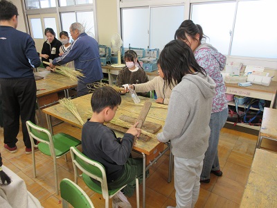 12/6(金)ゲストティーチャーをお招きし、5年生がバケツで育てた稲の藁を使ってしめ縄づくりを行いました。