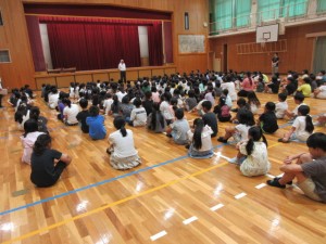 子どもたち全員、不審者確保の連絡後、迅速に体育館に集合することができました。